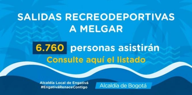 La Alcaldía Local de Engativá, en cabeza de su Alcaldesa Ángela Vianney Ortiz Roldán, le informa a la comunidad, adultos mayores y personas con discapacidad, que debido al paro nacional que se realizará el día jueves 21 de noviembre de 2019, las salidas recreo deportivas a clima cálido para el jueves 21 y viernes 22 de noviembre fueron reprogramadas para los días jueves 5 y viernes 6 de diciembre de 2019.