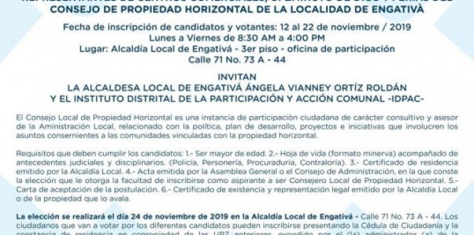 Convocatoria Extraordinaria para elección de consejeros de propiedad horizontal de la localidad.