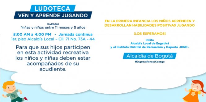 La Alcaldía Local de Engativá invita a todos los niños y niñas entre 11 meses y 5 años de edad a participar de las actividades recreativas para la primera infancia.