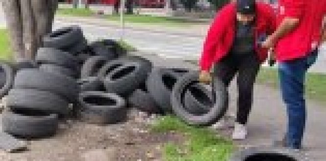 Bogotá D.C., 21 de noviembre de 2025. La Alcaldía Local de Engativá, a través del área de Ambiente, adelantó una jornada integral de recuperación y control del espacio público, en cinco puntos priorizados en la localidad, por el reporte de residuos y establecimiento de cambuches. Además, se desarrolló la Llantatón, que permitió la recolección de neumáticos y llantas en desuso para darles una correcta disposición como residuos voluminosos. Durante la operación, fueron recuperados 25.5 metros cuadrados de espacio público, se recolectaron 2.5 metros cúbicos de residuos y se recogieron 318 llantas, que se encontraban dispersadas en calles, canales de aguas y puntos no autorizados para residuos.
