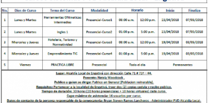 La siguiente es la oferta educativa gratuita para el mes de Abril: