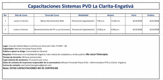Capacitación sistemas curso PVD La Clarita - Engativá
