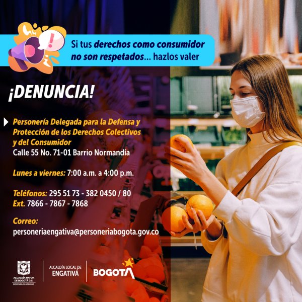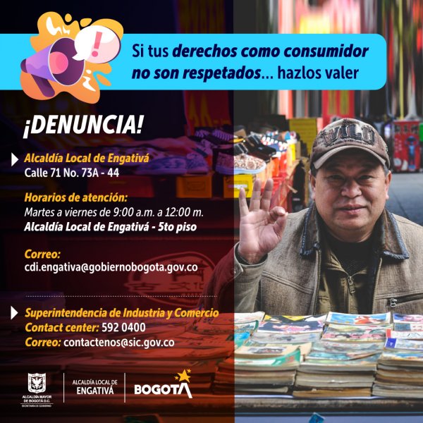 La Alcaldía Local de Engativá, la Personería Delegada para la Defensa y Protección de los Derechos Colectivos y del Consumidor y la Superintendencia de Industria y Comercio, tienen la misión de velar y proteger los derechos de los consumidores e informarles la importancia del cumplimiento de sus deberes. Estos son algunos de ellos: