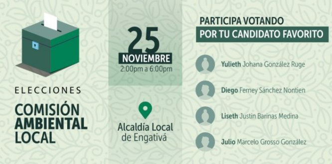 La Alcaldía Local de Engativá presenta el listado de los candidatos y candidatas inscritos para participar en las elecciones de la Comisión Ambiental Local de Engativá, que se realizarán el 25 de noviembre del presente año.