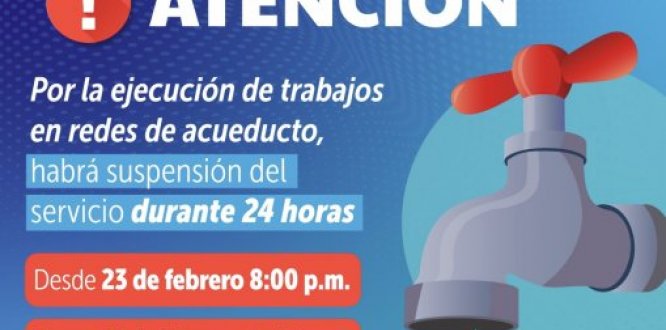 Los siguientes sectores de Engativá tendrán suspensión de servicio durante 24 horas, iniciando desde las 8:00 p.m. del miércoles 23 de febrero hasta las 8:00 p.m. del jueves 24 de febrero. Es de destacar, que el proceso de normalización del servicio puede tardar hasta 6 horas adicionales, finalizando a las 2:00 a.m. del viernes 25 de febrero.